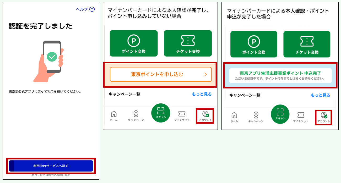 本人確認や東京ポイントの申し込みが完了したのかわかりません。