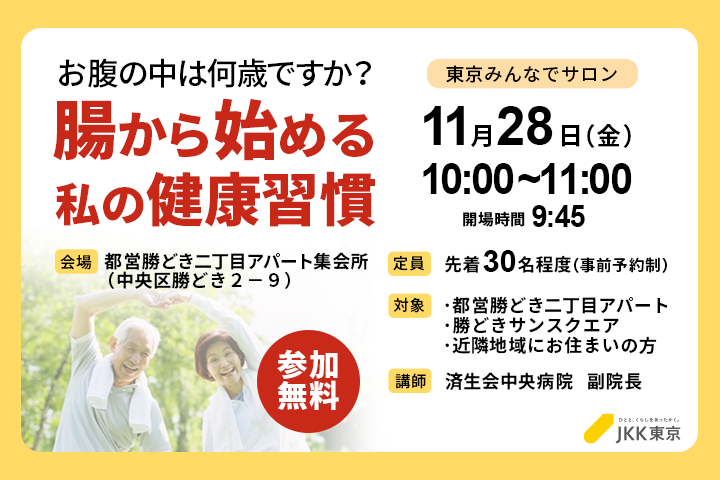 【東京みんなでサロン】東京都済生会中央病院の専門医師と学ぶ 「腸から始める私の健康習慣」