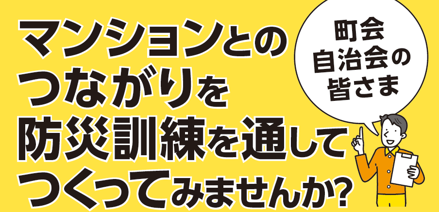 東京都では、地域のつながりづくりを進めるため、町会とマンションとの合同防災訓練をコーディネートしています。